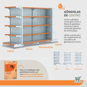 A fileira de Gôndolas deve ser iniciada com a Gôndola Inicial que possui 2 colunas, aGôndola Continuação possui 1 coluna, utilizada para dar continuidade à fileira e não pode ser montada individualmente.
