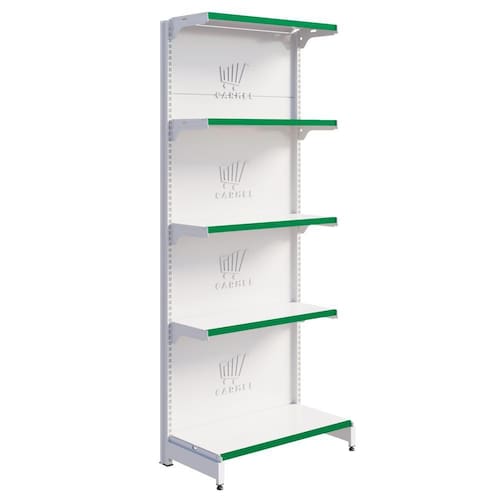 É facilmente montada por sistema de encaixe, sem uso de parafusos, inclinação da bandeja em 3 posições e fundo quadrado para melhor exposição. Possui bandejas reguláveis na coluna a cada 25mm, o que permite adição de bandejas extras. Sistema de reforço para maior capacidade de carga e estabilidade. Ponteira de coluna para proteção e durabilidade. Porta Etiquetas Smart, que não solta fácil.
