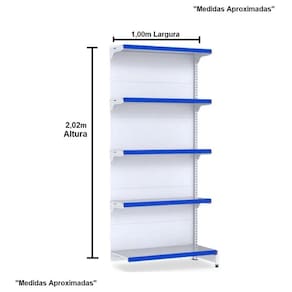 Gôndola FIT 60 Parede Inicial 2,02m Altura - Amapá As Gôndola FIT 60 amapá são ideais para armazenagem e exposição de seus produtos em supermercados, mercearias, farmácias, lojas de utilidades, materiais de construção, agropecuárias e muito mais. Equipamento para comerciantes de médio porte que desejem aproveitar todo o espaço da loja. Facilmente instalada na parede devido ao sistema de montagem por encaixe, sem uso de parafusos. Utilizada em supermercados, petshops, home centers, agropecuárias, lojas de construção e outros.Inclinação da bandeja em 3 posições e fundo quadrado para melhor exposição. Possui bandejas reguláveis na coluna a cada 25mm, o que permite adição de bandejas extras. Sistema de reforço que permite maior capacidade de carga. Ponteira de coluna para mais proteção e durabilidade. Possui travador de parede, item obrigatório para uma instalação com segurança. O número de bandejas varia de acordo com altura; Todos os produtos Amapá possuem qualidade, resistência e durabilidade garantidas pelo uso de matérias-primas de alto padrão, processos produtivos tecnológicos e controle de qualidade. A pintura dos produtos é feita por meio da técnica eletrostática e com tratamento anticorrosão, deixando uniforme e resistente.A Fileira de Gôndolas deve ser iniciada com a Gôndola INICIAL que possui 2 colunas. A Gôndola CONTINUAÇÃO possui 1 coluna, utilizada para dar continuidade à fileira e não pode ser montada individualmente. Dimensões Aproximadas Altura: 2,02mComprimento da Bandeja: 0,90mProfundidade da Bandeja da Base: 0,50mProfundidade das Bandejas Superiores: 0,40mComprimento Molntada: 1,00m "Medidas Aproximadas" Características Cor: BrancaQuantidade de Bandejas por Gôndola: 5Capacidade das Bandejas Superiores: 60 kgCapacidade das Bandejas Inferiores: 60 kgPorta Etiquetas Cores Disponíveis: Azul, Vermelha, Laranja, Verde ou Amarela. Contém 05 Porta Etiquetas Com Acrílico Amapá01 Gôndola FIT 60 Parede Inicial 2,02m Altura Amapá Entrega Via: TransportadoraPrazo: Consulte pelo CEP com nossos vendedores Garantia Contra Defeitos de Fabricação: 12 mesesDevolução Em até 7 dias após a chegada do produto, você tem o direito de realizar a devolução. Mas para isso, a mercadoria não deve ter sido montada, utilizada e danificada.Horário de AtendimentoSegunda a Sexta-feira, das 13:00h às 17:00h.Dúvidas, Informações, Consulte Nossos Vendedores Via WhatsApp.\nFicha Técnica\nCódigo AMP0476\nModelo Gôndola FIT 60 PAREDE INICIAL 2,02m Altura x 1,00m Largura Amapá\nCategoria Gôndolas FIT 60\nMarca Amapá Metalúrgica\nItens Inclusos 01 Gôndola FIT 60 Parede Inicial 2,02m Altura Amapá05 Porta Etiquetas Com Acrílico Amapá\nGarantia 1 ano após o recebimento do produto\nDisponibilidade Disponível em 30 dias úteis\nInformação adicional Dúvidas, Informações, Consulte Nossos Vendedores Via WhatsApp.