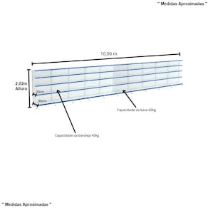 Gôndola FIT Parede 2,02m Altura x 10,00m Comprimento 1 Inicial 9 Continuações - AmapáAs Gôndolas FIT Amapá são ideais para armazenagem e exposição de seus produtos em supermercados, mercearias, farmácias, lojas de utilidades, materiais de construção, agropecuárias e muito mais. Equipamento para comerciantes de pequeno e médio porte que desejem aproveitar todo o espaço da loja. Facilmente instalada na parede devido ao sistema de montagem por encaixe, sem uso de parafusos. Utilizada em mercados, mercearias, farmácias, papelarias, supermercados, petshops, home centers, agropecuárias, lojas de construção, lojas de utilidades e outros negócios.Inclinação da bandeja em 3 posições e fundo quadrado para melhor exposição. Possui bandejas reguláveis na coluna a cada 25mm, o que permite adição de bandejas extras. Sistema de reforço que permite maior capacidade de carga. Ponteira de coluna para mais proteção e durabilidade. Possui travador de parede, item obrigatório para uma instalação com segurança. O número de bandejas varia de acordo com altura; Todos os produtos Amapá possuem qualidade, resistência e durabilidade garantidas pelo uso de matérias-primas de alto padrão, processos produtivos tecnológicos e controle de qualidade. A pintura dos produtos é feita por meio da técnica eletrostática e com tratamento anticorrosão, deixando uniforme e resistente.A Fileira de Gôndolas deve ser iniciada com a Gôndola INICIAL que possui 2 colunas. A Gôndola CONTINUAÇÃO possui 1 coluna, utilizada para dar continuidade à fileira e não pode ser montada individualmente. Dimensões Aproximadas Altura: 2,02mComprimento da Bandeja: 0,90mProfundidade da Bandeja da Base: 0,40mProfundidade das Bandejas Superiores: 0,30mComprimento Total: 10,00m " Medidas Aproximadas " Características Cor: BRANCAMarca: AmapáQuantidade de Bandejas Total: 50Quantidade de Bandejas por Gôndola: 5Capacidade das Bandejas Inferiores: 40kgCapacidade das Bandejas Superiores: 40kgFornecedor: Mixmob Instalações ComerciaisPorta Etiquetas Cor: Azul, Vermelha, Amarela e Laranja Contém 50 Porta Etiquetas Com Acrilico - Amapá 01 Gôndola FIT Premium 2,02m Branca Parede Inicial 40/30 – Amapá 09 Gôndolas FIT Premium 2,02m Branca Parede Continuação 40/30 – Amapá. Entrega Via: TransportadoraPrazo: Consulte pelo CEP com nossos vendedores Garantia Contra Defeitos de Fabricação: 12 mesesDevolução Em até 7 dias após a chegada do produto, você tem o direito de realizar a devolução. Mas para isso, a mercadoria não deve ter sido montada, utilizada e danificada.Horário de AtendimentoSegunda a Sexta-feira, das 13:00h às 17:00h.Dúvidas, Informações, Consulte Nossos Vendedores via WhatsApp.\nFicha Técnica\nCódigo 1347\nModelo Linha Gôndolas FIT Amapá\nCategoria Gôndolas FIT 40 Parede\nMarca Amapá Metalúrgica\nItens Inclusos 50 Porta Etiquetas Com Acrilico - Amapá01 Gôndola FIT Premium 2,02m Branca Parede Inicial 40/30 Amapá09 Gôndolas FIT Premium 2,02m Branca Parede Continuação 40/30 Amapá.\nGarantia 1 ano após o recebimento do produto\nDisponibilidade Disponível em 3 dias úteis\nInformação adicional Dúvidas, Informações, Consulte Nossos Vendedores via WhatsApp.