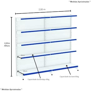 Gôndola FIT Parede PRETA 2,02m Altura x 2,00m Comprimento – Amapá As Gôndolas FIT 40 Amapá são ideais para armazenagem e exposição de seus produtos em supermercados, mercearias, farmácias, lojas de utilidades, materiais de construção, agropecuárias e muito mais. Equipamento para comerciantes de pequeno e médio porte que desejem aproveitar todo o espaço da loja. Facilmente instalada na parede devido ao sistema de montagem por encaixe, sem uso de parafusos. Utilizada em mercados, mercearias, farmácias, papelarias, supermercados, petshops, home centers, agropecuárias, lojas de construção, lojas de utilidades e outros negócios.Inclinação da bandeja em 3 posições e fundo quadrado para melhor exposição. Possui bandejas reguláveis na coluna a cada 25mm, o que permite adição de bandejas extras. Sistema de reforço que permite maior capacidade de carga. Ponteira de coluna para mais proteção e durabilidade. Possui travador de parede, item obrigatório para uma instalação com segurança. O número de bandejas varia de acordo com altura; Todos os produtos Amapá possuem qualidade, resistência e durabilidade garantidas pelo uso de matérias-primas de alto padrão, processos produtivos tecnológicos e controle de qualidade. A pintura dos produtos é feita por meio da técnica eletrostática e com tratamento anticorrosão, deixando uniforme e resistente. Dimensões Aproximadas Altura: 2,02mComprimento da Bandeja: 90cmProfundidade da Bandeja da Base: 0,40mProfundidade das Bandejas Superiores: 0,30mComprimento Total Montada: 2,00m " Medida Aproximada " Características Cor: PretaMarca: AmapáQuantidade de Bandejas Total: 10Quantidade de Bandejas por Gôndola: 05Capacidade das Bandejas Inferiores: 40kgCapacidade das Bandejas Superiores: 40kgFornecedor: Mixmob Instalações Comerciais Linha de Gôndolas FIT com Inclinação das Bandejas em até 3 posições. Porta Etiquetas Cores Diponíveis: Azul, Amarelo, Verde, Vermelha e Laranja. Contém 10 Porta Etiquetas Com Acrilico - Amapá 01 Gôndolas FIT 2,02m Preta Parede Inicial 40/30 – Amapá 01 Gôndolas FIT 2,02m Preta Parede Continuação 40/30 – Amapá. Entrega Via: TransportadoraPrazo: Consulte pelo CEP com nossos vendedoresGarantia Contra Defeitos de Fabricação: 12 meses DevoluçãoEm até 7 dias após a chegada do produto, você tem o direito de realizar a devolução. Mas para isso, a mercadoria não deve ter sido montada, utilizada e danificada.Horário de AtendimentoSegunda a Sexta-feira, das 13:00h às 17:00h.Dúvidas, Informações, Consulte Nossos Vendedores Via WhatsApp.\nFicha Técnica\nCódigo 1373\nModelo Linha Gôndolas FIT 40 Amapá\nCategoria GÔNDOLAS AMAPÁ\nMarca Amapá Metalúrgica\nItens Inclusos 10 Porta Etiquetas Com Acrilico - Amapá01 Gôndolas FIT 2,02m Preta Parede Inicial 40/30 Amapá01 Gôndolas FIT 2,02m Preta Parede Continuação 40/30 Amapá.\nGarantia 1 ano após o recebimento do produto\nDisponibilidade Disponível em 30 dias úteis