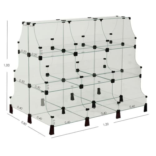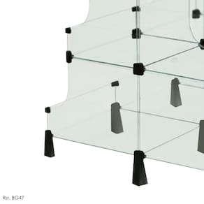 Produzido em vidro temperado de 4mm de espessura, medindo 1.20 comprimento x 1.00 altura x 0.80 na base profundidade. A Gôndola Pirâmide Modulada em Vidro Ideal para expor produtos no centro da loja