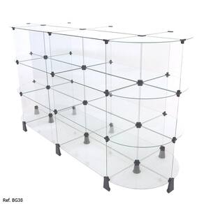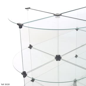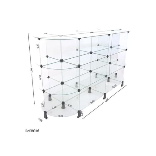 Gôndola modulado em vidro temperado de 4mm com conectivos em resina ABS no tamanho de 1,60 x 1,00 x 0,60. Ideal para expor produtos no centro de lojas!<