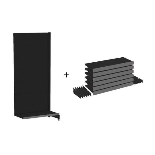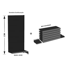 GÔNDOLA PAREDE 170 AMAPÁ FLEX 40 CONTINUAÇÃO PRETO COM 7 BANDEJAS BASE 40 CM E AS DEMAIS 30 CM COM PORTA ETIQUETA CINZA