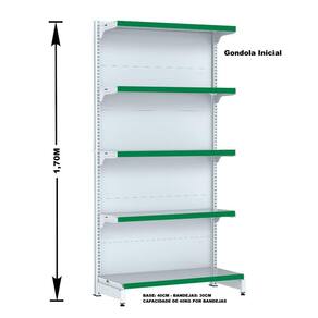 GONDOLA PAREDE 170 FIT AMAPÁ PARA VÃO DE ATÉ 2 METROS MAIS UM CANTO 40/30 BRANCO 15 BANDEJAS PORTA ETIQUETA VERDE
