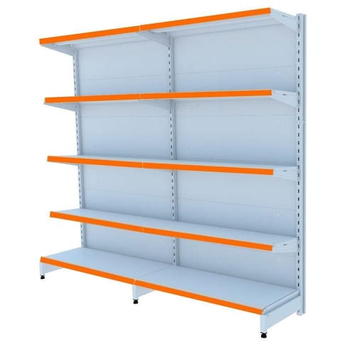 GÔNDOLA PAREDE 170 FIT AMAPÁ PARA VÃO DE ATÉ 2 METROS 40/30 BRANCO 10 BANDEJAS PORTA ETIQUETA LARANJA