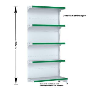 GÔNDOLA PAREDE 170 FIT AMAPÁ PARA VÃO DE ATÉ 2 METROS 40/30 BRANCO 10 BANDEJAS PORTA ETIQUETA VERDE