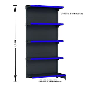 GÔNDOLA PAREDE 170 FIT AMAPÁ PARA VÃO DE ATÉ 3 METROS 40/30 BRANCO 15 BANDEJAS PORTA ETIQUETA AZUL