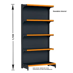 A fileira de Gôndolas deve ser iniciada com a Gôndola Inicial que possui 2 colunas. A Gôndola Continuação possui 1 coluna, utilizada para dar continuidade à fileira e não pode ser montada individualmente.