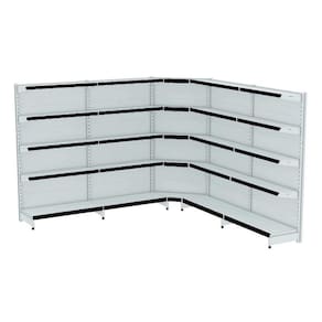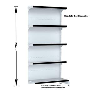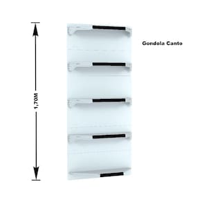 GONDOLA PAREDE 170 FIT AMAPÁ PARA VÃO DE ATÉ 4 METROS MAIS UM CANTO 40/30 BRANCO 25 BANDEJAS PORTA ETIQUETA PRETO