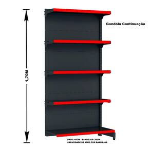 GÔNDOLA PAREDE 170 FIT AMAPÁ PARA VÃO DE ATÉ 4 METROS 40/30 BRANCO 20 BANDEJAS PORTA ETIQUETA VERMELHO