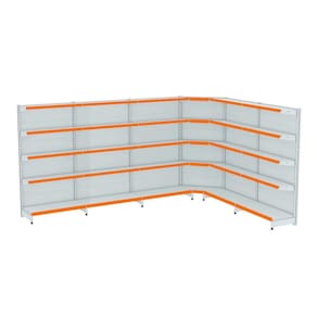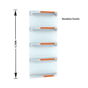 GONDOLA PAREDE 170 FIT AMAPÁ PARA VÃO DE ATÉ 5 METROS MAIS UM CANTO 40/30 BRANCO 30 BANDEJAS PORTA ETIQUETA LARANJA