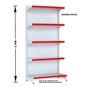 A fileira de Gôndolas deve ser iniciada com a Gôndola Inicial que possui 2 colunas. A Gôndola Continuação possui 1 coluna, utilizada para dar continuidade à fileira e não pode ser montada individualmente.