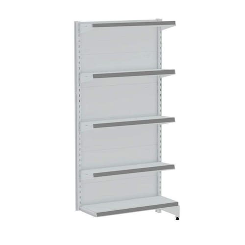 GÔNDOLA PAREDE 196 CONTINUAÇÃO AMAPÁ LINHA PREMIUM FLEX 60 EXTRA FORTE 5 BANDEJAS 1X 40 CM 4X 35 CM COR BRANCO PORTA ETIQUETA (FAIXA) CINZA