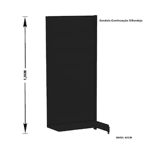 GÔNDOLA PAREDE 196 AMAPÁ FLEX 40 CONTINUAÇÃO PRETO COM UMA BANDEJA BASE 40 CMA Gôndola Premium Flex 40 Parede SEM BANDEJAS é ideal para instalar réguas gancheira, segue com bandeja na base 40 cm. Recomendada para supermercados, mercearias, lojas de utilidades, materiais de construção, agropecuárias e outros.Prática e fácil de montar, com sistema de encaixe sem utilização de parafusos pés com regulagem de altura, colunas dupladas e tratamento especial da superfície.ESPECIFICAÇÕES:1 bandejaCapacidade por bandeja: 40 Kg distribuídoA bandeja base com profundidade de 40 cm.Montagem por encaixe, sem uso de parafusosDIMENSÕES (AxLxP):Altura: 196,0 cmLargura: 92,0 cmProfundidade: 40,0 cmGarantia: 6 meses, sendo 90 dias período legal e 90 dias estendida pelo fabricante.FAQ - "Perguntas frequentes"Esta gondola, qual a utilidade dela?Esta gondola segue com uma bandeja de 40 cm na base e não tem as demais bandejas, recomendado para instalar régua gancheira onde você adiciona ganchos e encartelados.Vem com as réguas gancheira?Não!Qual material?Chapa de Aço.Este produto é novo?Sim, produto novo.Vem com Nota Fiscal?Todos nossos itens seguem acompanhados de Nota Fiscal, com valor total da compra.