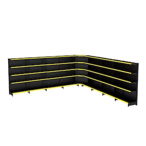 GONDOLA PAREDE 196 AMAPÁ FLEX KIT 8 METROS COM 1 CANTO 40/30 PRETO PORTA ETIQUETA AMARELO