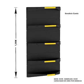Resposta: Facilitar a exposição de produtos, recomendado para farmácia, supermercados, mercearias, lojas de utilidades, materiais de construção, agropecuárias e outros. Sim pode aumentar o número de bandejas (opcional) e assim diminuir o espaço entre uma bandeja e outra, aproveitando melhor o espaço.