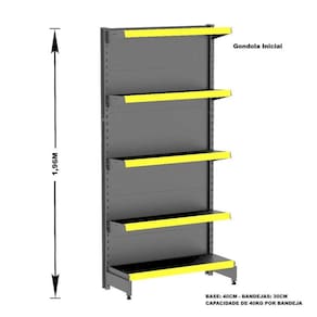A Gôndola Premium Flex 40 Parede é ideal para supermercados, mercearias, lojas de utilidades, materiais de construção, agropecuárias e outros. Prática e fácil de montar, com sistema de encaixe sem utilização de parafusos, possui bandejas reguláveis a cada 4,5 cm, pés com regulagem de altura, colunas dupladas e tratamento especial da superfície.