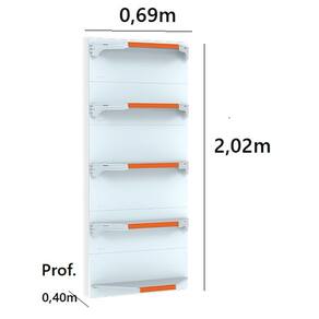 A Gôndola Premium FIT 40 Parede é ideal para supermercados, mercearias, lojas de utilidades, materiais de construção, agropecuárias e outros. Prática e fácil de montar, com sistema de encaixe sem utilização de parafusos, possui bandejas reguláveis a cada 4,5cm, pés com regulagem de altura, colunas dupladas e tratamento especial da superfície.