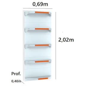 A Gôndola Premium FIT 40 Parede é ideal para supermercados, mercearias, lojas de utilidades, materiais de construção, agropecuárias e outros. Prática e fácil de montar, com sistema de encaixe sem utilização de parafusos, possui bandejas reguláveis a cada 4,5cm, pés com regulagem de altura, colunas dupladas e tratamento especial da superfície.