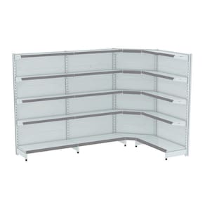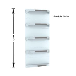 GONDOLA PAREDE 202 FIT AMAPÁ PARA VÃO DE ATÉ 3 METROS MAIS UM CANTO 40/30 BRANCO 20 BANDEJAS PORTA ETIQUETA CINZA