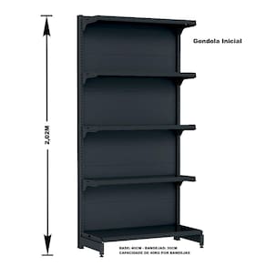 A fileira de Gôndolas deve ser iniciada com a Gôndola Inicial que possui 2 colunas. A Gôndola Continuação possui 1 coluna, utilizada para dar continuidade à fileira e não pode ser montada individualmente.