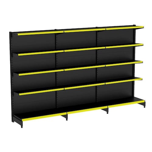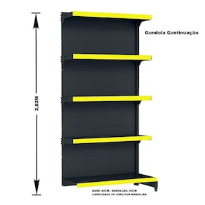 GÔNDOLA PAREDE 202 FIT AMAPÁ PARA VÃO DE ATÉ 3 METROS 40/30 PRETO 15 BANDEJAS PORTA ETIQUETA AMARELO