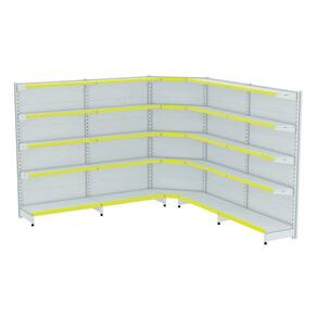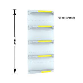 GONDOLA PAREDE 202 FIT AMAPÁ PARA VÃO DE ATÉ 4 METROS MAIS UM CANTO 40/30 BRANCO 25 BANDEJAS PORTA ETIQUETA AMARELO
