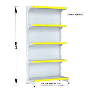 A fileira de Gôndolas deve ser iniciada com a Gôndola Inicial que possui 2 colunas. A Gôndola Continuação possui 1 coluna, utilizada para dar continuidade à fileira e não pode ser montada individualmente.