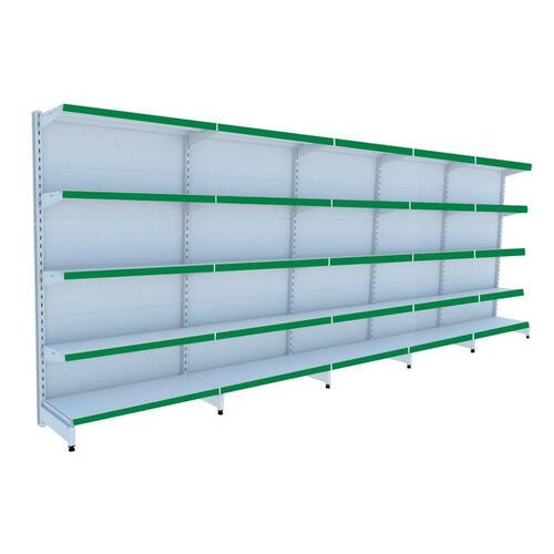 GÔNDOLA PAREDE 202 FIT AMAPÁ PARA VÃO DE ATÉ 5 METROS 40/30 BRANCO 25 BANDEJAS PORTA ETIQUETA VERDE