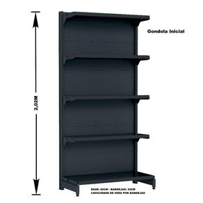 GÔNDOLA PAREDE 202 FIT AMAPÁ PARA VÃO DE ATÉ 5 METROS 40/30 PRETO 25 BANDEJAS SPE (SEM PORTA ETIQUETA)