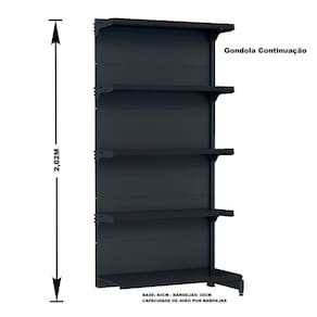 A fileira de Gôndolas deve ser iniciada com a Gôndola Inicial que possui 2 colunas. A Gôndola Continuação possui 1 coluna, utilizada para dar continuidade à fileira e não pode ser montada individualmente.