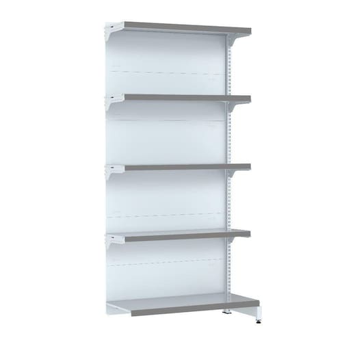 A fileira de Gôndolas deve ser iniciada com a Gôndola Inicial que possui 2 colunas. A Gôndola Continuação possui 1 coluna, utilizada para dar continuidade à fileira e não pode ser montada individualmente.