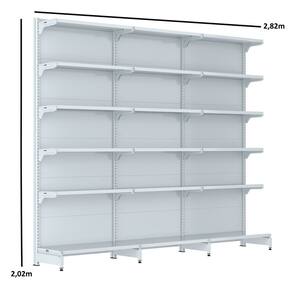 Instruções de Utilização: Para iniciar a montagem da fileira de gôndolas, é essencial utilizar a Gôndola Inicial, que conta com duas colunas. A sequência da estrutura é feita com a Gôndola Continuação, composta por uma coluna, projetada exclusivamente para a ampliação da fileira não podendo ser instalada isoladamente.