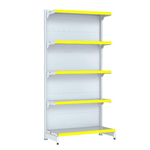 A fileira de Gôndolas deve ser iniciada com a Gôndola Inicial que possui 2 colunas. A Gôndola Continuação possui 1 coluna, utilizada para dar continuidade à fileira e não pode ser montada individualmente.