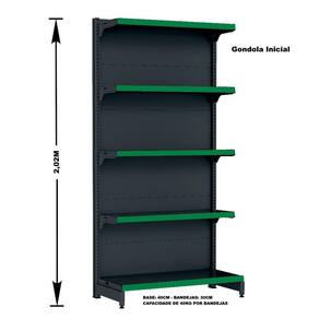 GÔNDOLA PAREDE 202 INICIAL FIT AMAPÁ 40/30 COR PRETO PORTA ETIQUETA VERDE