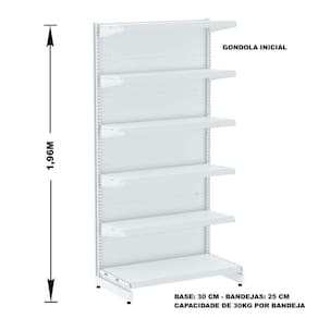GONDOLA PAREDE FARMÁCIA 196 AMAPÁ FLEX PREMIUM INICIAL 5 BANDEJAS 30/25 BRANCO SPE (SEM PORTA ETIQUETA)