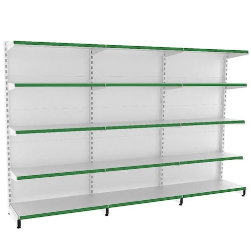2 Gôndolas Continuação de Parede (4 bandejas de 30cm + 1 base de 40cm - cada)