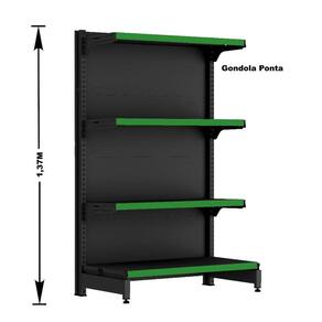 GÔNDOLA PONTA 137 FIT AMAPÁ 40/30 PRETO 4 BANDEJAS PORTA ETIQUETA VERDE