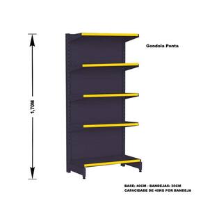 A Gôndola Ponta Premium Flex 40 finaliza ou inicia a fila da gôndola de centro é ideal para supermercados, mercearias, lojas de utilidades, materiais de construção, agropecuárias e outros.