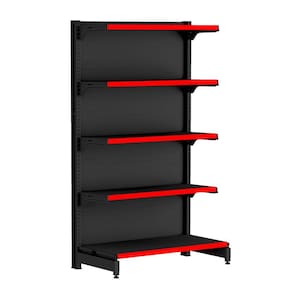 GÔNDOLA PONTA 170 FIT AMAPÁ 40/30 PRETO 5 BANDEJAS PORTA ETIQUETA VERMELHO