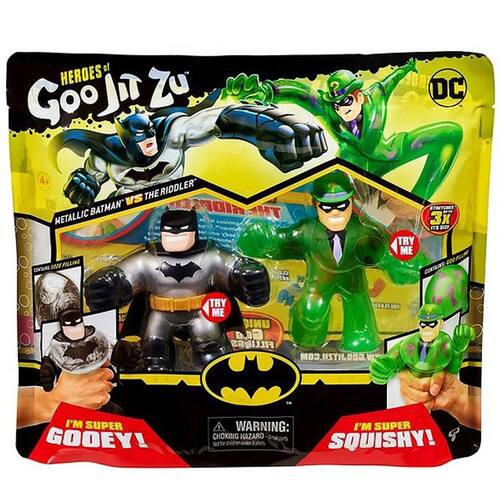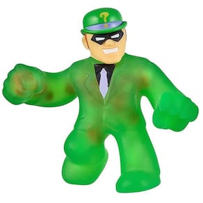 O Batman Metálico é super pegajoso! Aperte e estique seu corpo para ver o lodo metálico se mover dentro de seu corpo! O Charada é super fofo!