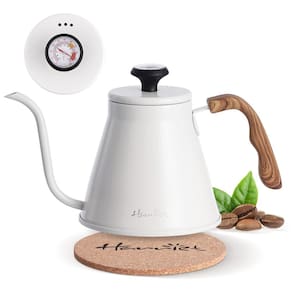 DESIGN ÚNICO DE BASE DE TRÊS CAMADAS Em comparação com outras chaleiras de café que têm apenas uma ou duas camadas de metal na parte inferior, nossa chaleira tem um design exclusivo de base de três camadas para manter sua chaleira livre de vazamentos e sem ferrugem por anos , que pode fornecer circulação de calor uniforme e ebulição rápida, que preserva mais o calor do que um pote de base de camada única. TERMÔMETRO INTEGRADO Para um sabor excepcional de café e chá, você precisa do melhor termômetro que puder. O fluxo de água suave é essencial para fazer café por gotejamento e despejar sobre o chá. O radiano de 90 pode ajudá lo a controlar com precisão a velocidade do fluxo de água para obter um vazamento preciso. PUNHO DE RESINA ANTI QUENTE RESISTENTE E ERGONÔMICO Este design estético e ergonômico da chaleira adota alça de resina resistente ao calor e um tapete de isolamento térmico adicional, permite que você segure a chaleira de café com as mãos sem risco de queimaduras. A forma ergonômica torna você mais confortável ao levantar, despejar e encher a água, garantindo que a cafeteira não escorregue. O design exclusivo de padrão de madeira da alça decora sua cozinha. DE USAR Esta chaleira de café usa materiais profissionais de qualidade alimentar e tecnologia de aço inoxidável 304, que é livre de ferrugem, fácil de limpar e rápida de aquecer. Livre de BPA. Mantenha e lave com cuidado e você sempre terá um fundo liso Esta chaleira de fogão é adequada para fogões a gás, elétricos, de indução, halogênio e radiantes. As chaleiras podem conter 1,1 litros , 37 onças de água, é melhor adicionar ao nível máximo de água no MAX da chaleira