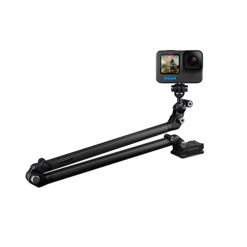 Conteúdo da Embalagem: Boom, Fivela de montagem, Suporte para câmera de junta esférica, Suporte adesivo plano, Suporte adesivo curvo, Chave hexagonal de 4 mm, Dois parafusos hexagonais extras, Dois braços de fibra de carbono, Controle deslizante do suporte de triangulação, Clipe de armazenamento de chave hexagonal