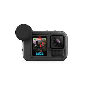 Conteúdo da Embalagem: Módulo de mídia para a HERO13 Black, Proteção removível contra o vento, Fivela de montagem vertical, Parafuso de ajuste manual