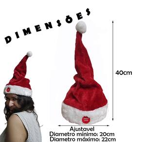 Ao apertar o botão, o gorro toca musiquinhas natalinas e se movimenta para direita e esquerda, criando um efeito animado que vai contagiar todo mundo ao redor!