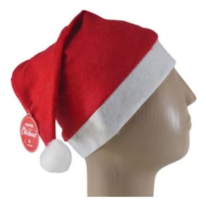 Touca Papai Noel ou Mamãe Noel, estes gorros são feitos de feltro, um material resistente e confortável. O design liso adiciona um toque de simplicidade e elegância, tornando-os adequados para qualquer tipo de roupa ou evento natalino.