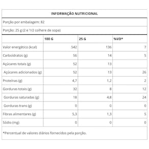 Informação Nutricional Porções por embalagem: 82 Porção: 25 g (2 1/2 colheres de sopa)