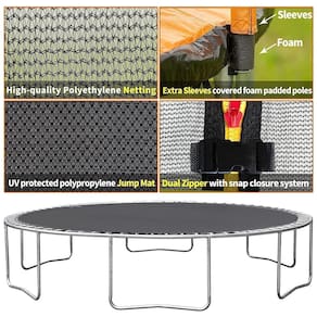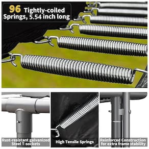 Salte para se divertir e se exercitar Saltar é uma ótima maneira de queimar calorias enquanto se diverte muito. Pode melhorar a força, densidade óssea, agilidade, equilíbrio e coordenação do seu filho. Com o trampolim grande, seus filhos também podem ficar longe dos eletrônicos. Trampolim resistente para crianças e adultos A estrutura utiliza aço reforçado com uma junta em T, tornando o trampolim grande uma base sólida e rígida e um salto mais suave e impressionante e uma carga pesada para crianças e adultos. A estrutura resistente à ferrugem oferece uso a longo prazo. A rede é forte e de boa qualidade. Uso interno e externo Além do exterior, este grande trampolim para crianças também pode ser em ambientes internos, mesmo que esteja chovendo, seus filhos também podem se divertir dentro de casa. A cesta de basquete recreativa adiciona muita diversão para seus filhos. Especificações Peso máximo de carga do trampolim de 16 pés 1.500 libras, para 8 a 10 crianças, limite de uma única pessoa 264 libras Peso máximo de carga do trampolim de 15 pés 1.400 libras, para 7 a 9 crianças, limite de uma única pessoa 264 libras Peso máximo de carga do trampolim de 14 pés 1.200 libras, para 6 8 crianças, limite de pessoa ÚNICA 264 libras Trampolim de 12 pés Peso máximo de carga 1000 libras, para 4 6 crianças, limite de pessoa ÚNICA 264 libras Altura do trampolim 8,86 pés Altura da rede do gabinete 5,9 pés Altura da perna 2,95 pés Construção da estrutura Tapete de salto de aço galvanizado resistente à ferrugem com proteção UV Rede de segurança de polipropileno Almofada de mola de polipropileno Molas resistentes a UV Resistente às intempéries Aço galvanizado Certificação ASTM F381 F2225 Aprovado Fácil montagem necessária Sim Informações do pacote O trampolim 16FT 15FT 14 FT virá em 2 caixas de embalagem. O trampolim de 12 pés virá em 1 caixa de embalagem. PS a luz dos acessórios do trampolim com alto falante e outros acessórios NÃO foram colocados na caixa do trampolim. Eles serão enviados separadamente e entregues em sua caixa de correio. Você receberá um pacote pequeno também.Capacidade de peso de 1500LBS A carga máxima deste trampolim de 16 pés é de 1500LBS, pode acomodar de 8 a 10 crianças. Este grande trampolim para adultos e crianças oferece uma maneira segura e eficaz de se divertir em família enquanto queima calorias e melhora a coordenação geral. Lembre se de que o peso do usuário sozinho não excede 264 LBS, para evitar lesões causadas por força irregular no trampolim Aprovado pela ASTM Trampolim ASTM F381 F2225 Aprovado. Os postes de aço são acolchoados com espuma e mangas, o que pode proteger seus filhos de baterem no poste. O sistema de recinto possui rede de segurança, acolchoamento protetor para cobrir a mola, ajuda a estabilizar as crianças enquanto elas pulam no trampolim do quintal Todos os acessórios completos O trampolim Goujxcy prepara os acessórios que você precisa 1x rede de futebol, 1x inflador de basquete, 1x luzes de trampolim, 1x luzes de discoteca com alto falante, 1 aspersor de trampolim, 30 bolas de água reutilizáveis, 8 meias de trampolim 4 pares para adultos e 4 pares para crianças Estrutura de estrutura forte A construção robusta é com juntas em T de aço resistentes à ferrugem, postes de aço verticais, 96 molas aprimoradas e 6 em forma de U pernas fortes, aumentando a estabilidade da estrutura e evitando torções estruturais, mantenha este trampolim de 16 pés com gabinete firmemente plantado no chão enquanto você salta para uma boa saúde Fácil de montar Observe que os pacotes virão em 2 caixas separadamente, eles podem não ser enviados juntos. Fácil de montar com 2 pessoas, a maioria das pessoas consegue terminar a montagem do trampolim infantil em pouco tempo. Qualquer problema, não hesite em contactar nos
