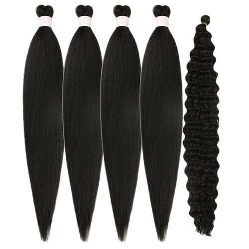 Marca: Gozill Título: Cabelo trançado preto pré-esticado Boho para trançar tranças onduladas profundas de crochê para cabelo boêmio, cabelo humano pré-esticado, trançado, hipoalergênico, sem nós Especificações: Comprimento da dobra 66 cm, 4 pacotes de cabelo trançado pré-esticado com 1 trança encaracolada de onda profunda 61 cm, 90 g/pacote, leve. Característica: cabelo sintético superior para trançar fibras. Fibras degradáveis de baixa temperatura Fácil de fazer configuração de água quente. Vantagem: economize tempo de preparação, economize dinheiro. Faça você mesmo para tranças boêmias, estilo de cabelo boêmio, tranças de caixa Adequado para: cabelo trançado Gozill pré-esticado, uso diário, trabalho, escola, encontros, festa, viagem cerimônia de formatura. Como presente para Dia de Ação de Graças, Dia das Mães ou Aniversário dos Amigos, Ano Novo Dia das Bruxas - Cabelo trançado pré-esticado para tranças Boho pré-esticado para economizar tempo de preparação, pré-camadas para um estilo de acabamento natural. - Cabelo trançado boêmio feito com fibras Yaki Txtutre macias, fácil de separar e segurar com o seu cabelo, cai perfeitamente. - Brading Hair pré-esticado 4 pacotes dobrados 66 polegadas; tranças encaracoladas onduladas profundas 1 pacote de 61 cm. Comprimento amigável para a maioria das pessoas. 90 g/peça, uso extra leve. - Ajuste de água quente. O cabelo fica ótimo em água quente e sela bem, cabelo trançado perfeito para penteados protetores como tranças de caixa, tranças sem nós, tranças de limonada, tranças de crochê, tranças de crochê, tranças. - Cabelo trançado preto feito com tecnologia de cor HD, sem manchas de cor, bom brilho.